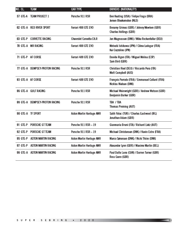 NO. CL. TEAM CAR TYPE DRIVERS (NATIONALITY)