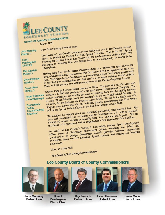 John Manning District One Lee County Board of County Commissioners Cecil L Pendergrass District Two Ray Sandelli District Three Brian Hamman District Four Frank Mann District Five