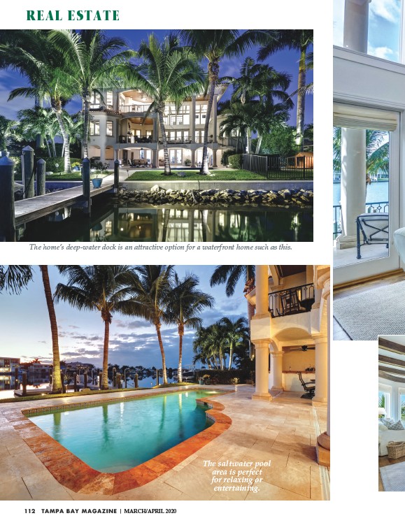 REAL ESTATE The home’s deep-water dock is an attractive option for a waterfront home such as this. 112 TAMPA BAY MAGAZINE | MARCH/APRIL 2020 The saltwater pool area is perfect for relaxing or entertaining.