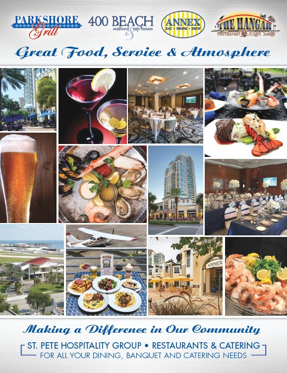 Great Food, Service & Atmosphere Making a Difference in Our Community ST. PETE HOSPITALITY GROUP • RESTAURANTS & CATERING FOR ALL YOUR DINING, BANQUET AND CATERING NEEDS MACRH/APRIL 2020 | TAMPA BAY MAGAZINE 19