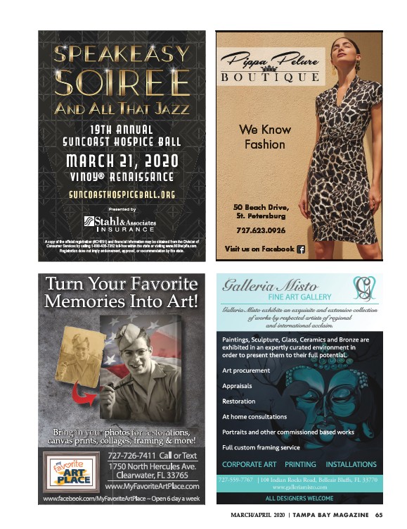 We Know Fashion MARCH/APRIL 2020 | TAMPA BAY MAGAZINE 65 19th Annual Suncoast Hospice Ball march 21, 2020 Vinoy® Renaissance suncoasthospiceball.org Presented by 50 Beach Drive, St. Petersburg 727.623.0926 Visit us on Facebook