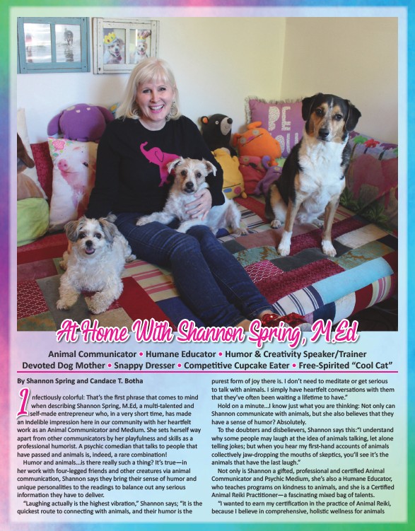 At Home With Shannon Spring, M.Ed Animal Communicator • Humane Educator • • Snappy Dresser •• Free-Spirited “Cool Cat” By Shannon Spring and Candace T. Botha I