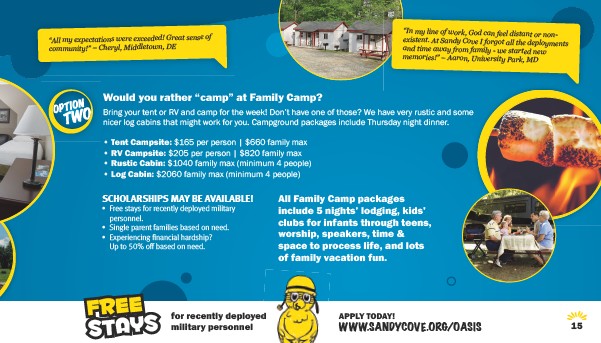 nicer log cabins that might work for you. Campground packages include Thursday night dinner.
