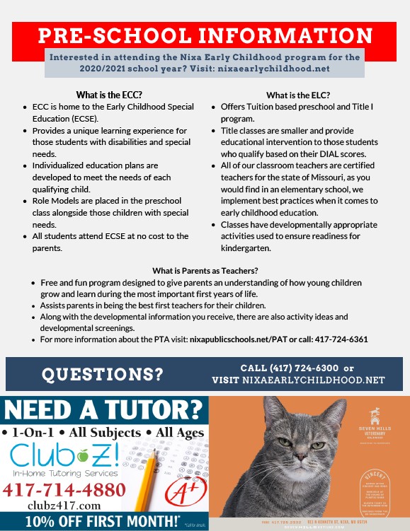 2020/2021 school year? Visit: nixaearlychildhood.net