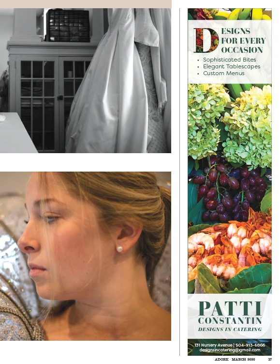 DESIGNS FOR EVERY OCCASION • Sophisticated Bites • Elegant Tablescapes • Custom Menus PATTI CONSTANTIN DESIGNS IN CATERING 131 Nursery Avenue | 504-913-6866 designsincatering@gmail.com ADORE • MARCH 2020 17