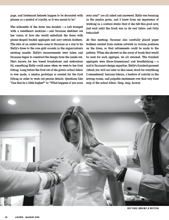 plume-shaped beaded appliqués and airy ostrich feathers.