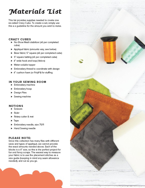Base fabric: 5” square (x6 per completed cube)