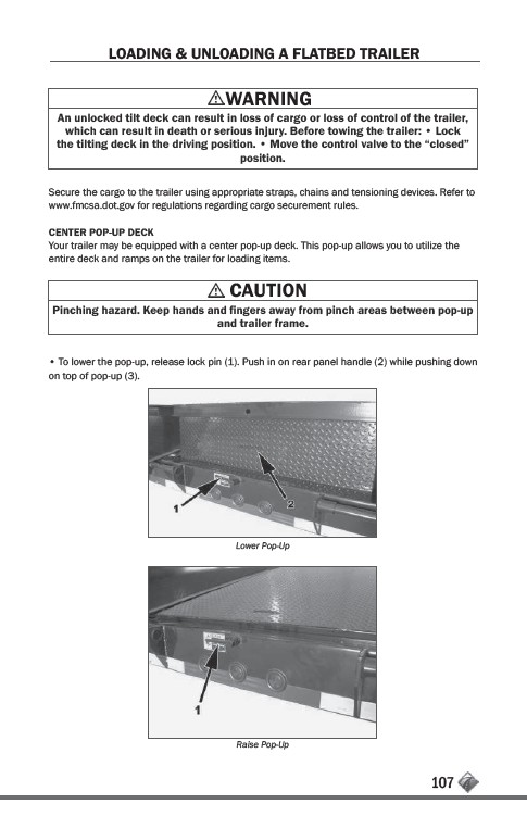 An unlocked tilt deck can result in loss of cargo or loss of control of the trailer,