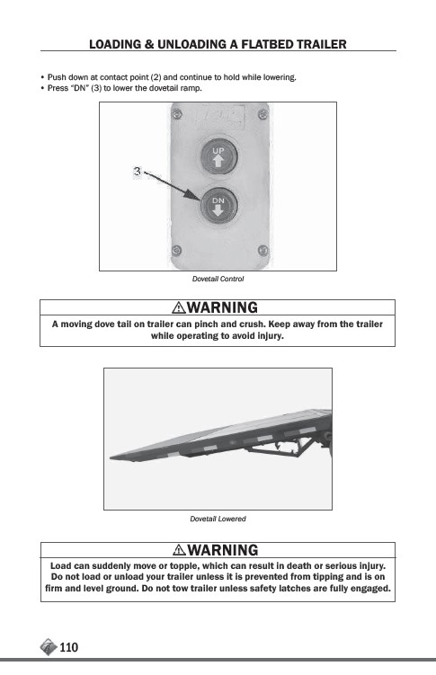 A moving dove tail on trailer can pinch and crush. Keep away from the trailer