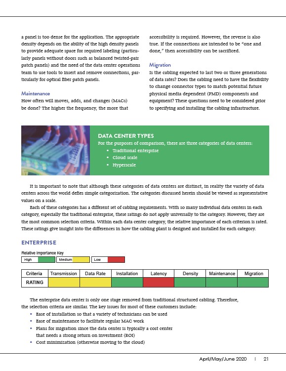 The enterprise data center is only one stage removed from traditional structured cabling. Therefore,