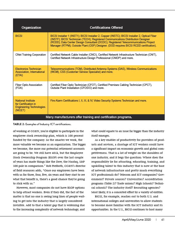 BICSI BICSI Installer 1 (INST1); BICSI Installer 2, Copper (INSTC); BICSI Installer 2, Optical Fiber