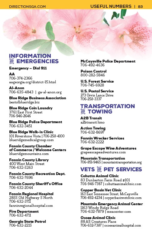 DIRECTIONSGA.COM USEFUL NUMBERS | 83