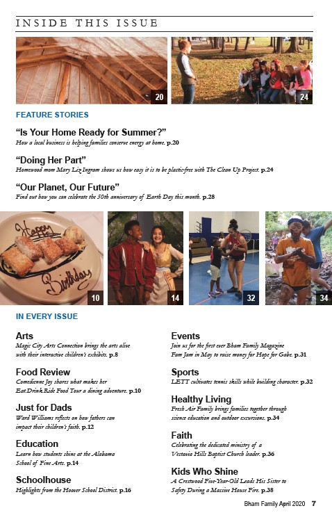 Homewood mom Mary Liz Ingram shows us how easy it is to be plastic-free with The Clean Up Project. p.24