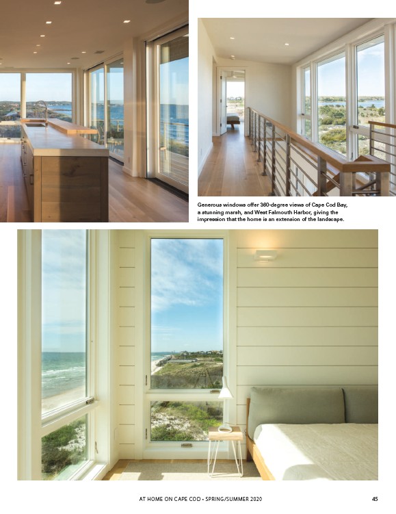 Generous windows offer 360-degree views of Cape Cod Bay, a stunning marsh, and West Falmouth Harbor, giving the impression that the home is an extension of the landscape. AT HOME ON CAPE COD • SPRING/SUMMER 2020 45