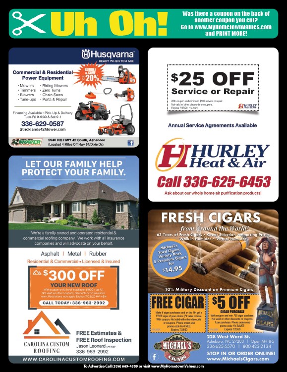 To Advertise Call (336) 669-4359 or visit www.MyHometownValues.com