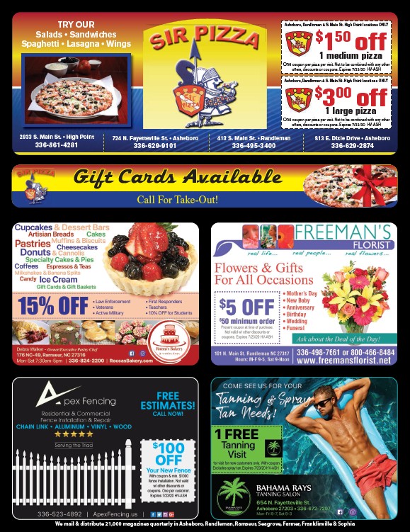 We mail & distribute 21,000 magazines quarterly in Asheboro, Randleman, Ramseur, Seagrove, Farmer, Franklinville & Sophia