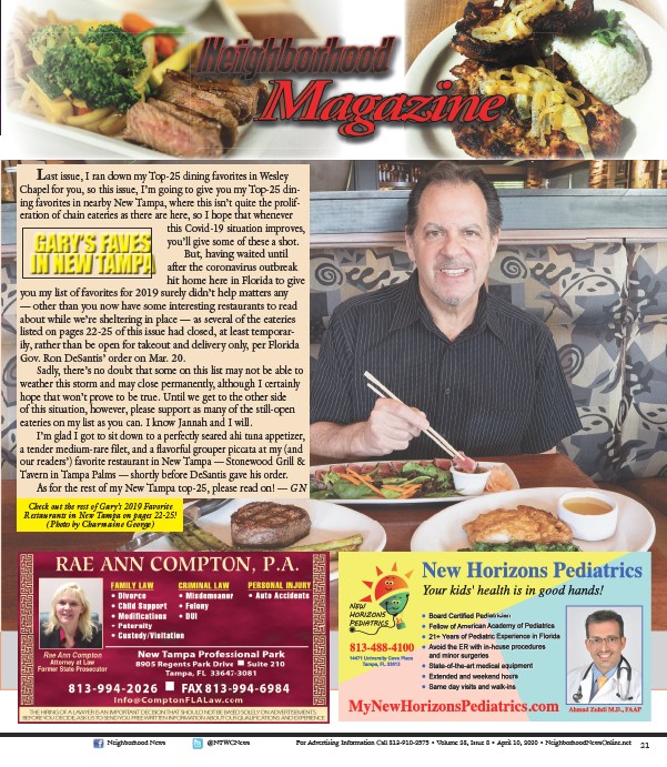 Neighborhood News @NTWCNews For Advertising Information Call 813-910-2575 • Volume 28, Issue 8 • April 10, 2020 • NeighborhoodNewsOnline.net 21