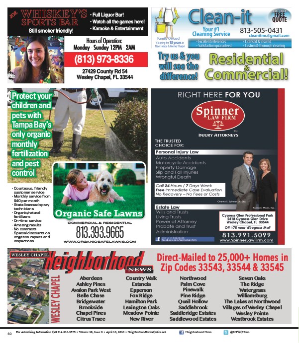 30 For Advertising Information Call 813-910-2575 • Volume 28, Issue 8 • April 10, 2020 • NeighborhoodNewsOnline.net Neighborhood News @NTWCNews