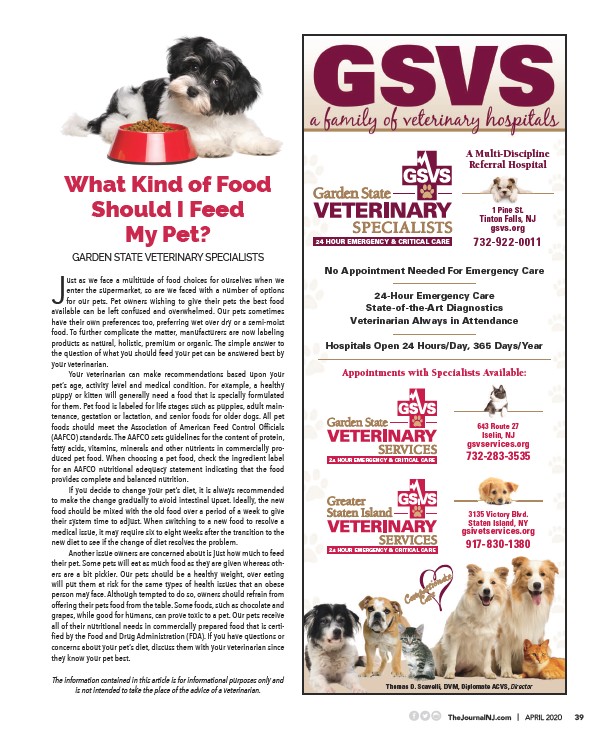 GARDEN STATE VETERINARY SPECIALISTS Just as we face a multitude of food choices for ourselves when we