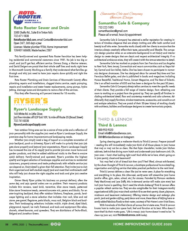 58 APRIL 2020 | TheJournalNJ.com HOME IMPROVEMENT GUIDE 2020