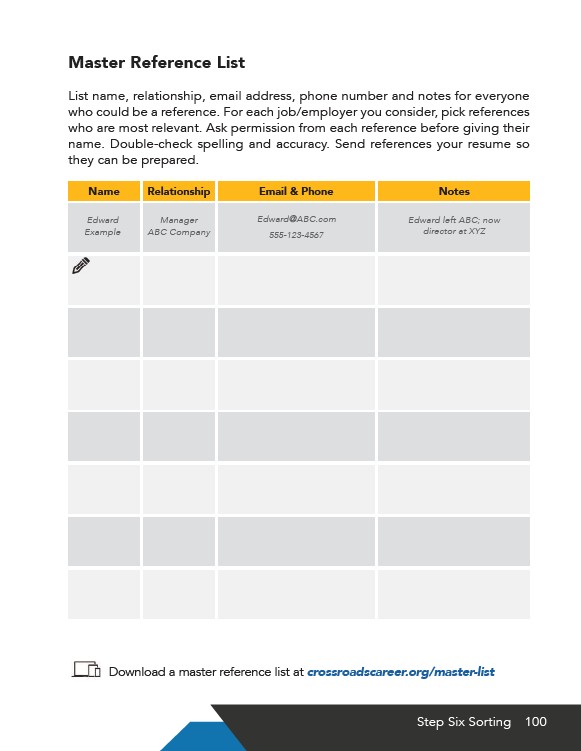 Download a master reference list at crossroadscareer.org/master-list