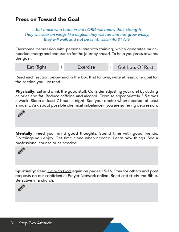 Spiritually: Read Go with God again on pages 15-16. Pray for others and post