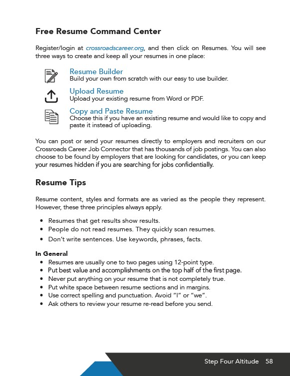 Register/login at crossroadscareer.org, and then click on Resumes. You will see