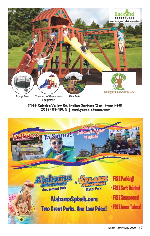 Bham Family May 2020 17 Trampolines Commercial Playground Equipment Play Serts 3165 Cahaba Valley Rd, Indian Springs 2 mi. from I-65 (205) 408-4FUN | backyardalabama.com