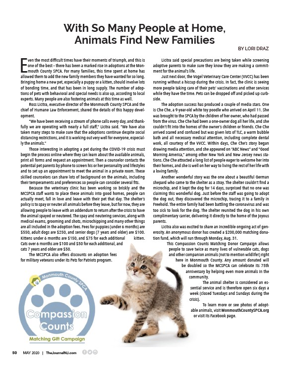 animals, visit MonmouthCountySPCA.org