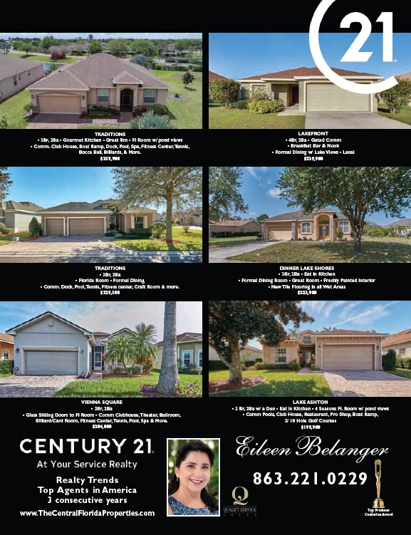 • 2 Br, 2Ba w/ a Den • Eat in Kitchen • 4 Seasons Fl. Room w/ pond views