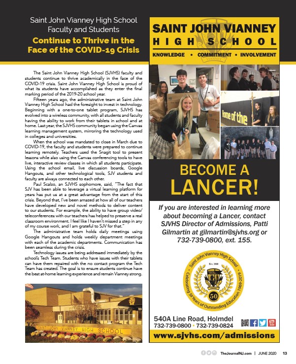 COVID-19 crisis. Saint John Vianney High School is proud of