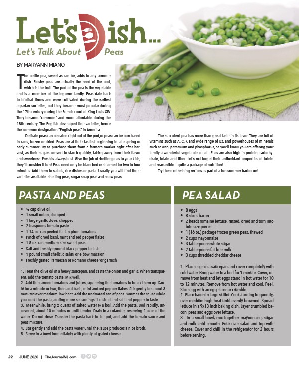 family a wonderful vegetable to eat. Peas are also high in protein, carbohy-