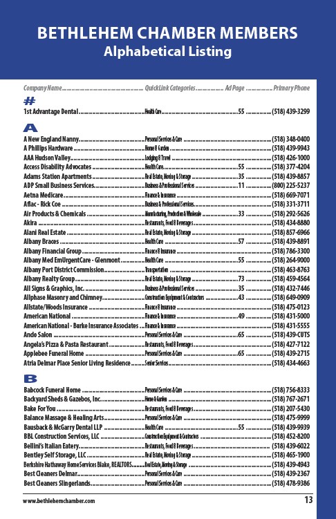 1st Advantage Dental .......................................Health Care .............................................55 ...............(518) 439-3299