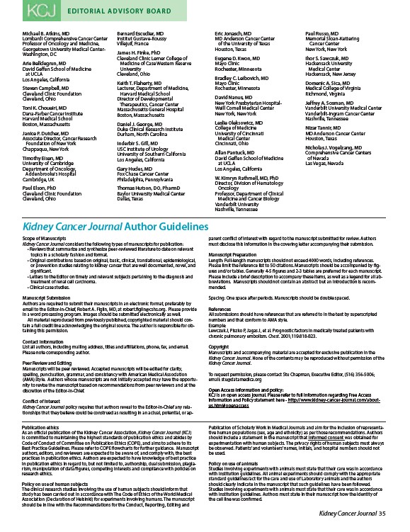 As an official publication of the Kidney Cancer Association, Kidney Cancer Journal (KCJ)
