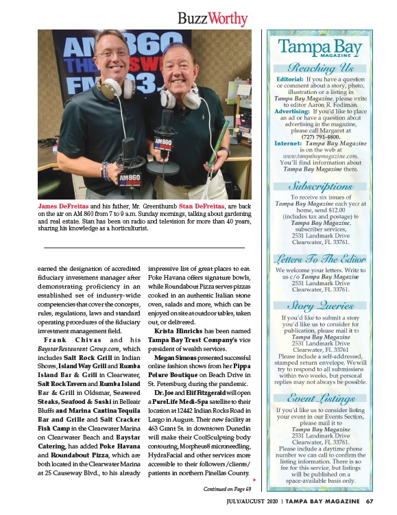 JULY/AUGUST 2020 | TAMPA BAY MAGAZINE 67