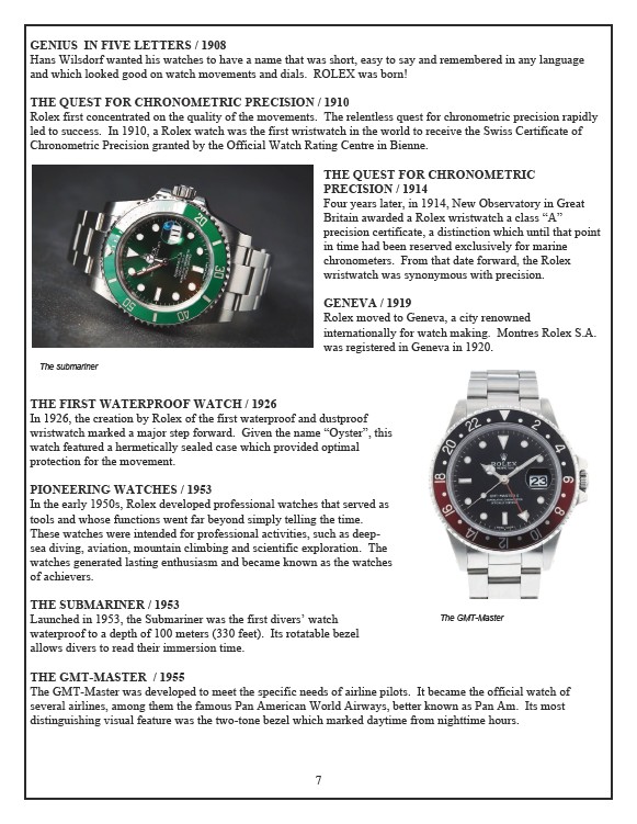 led to success. In 1910, a Rolex watch was the first wristwatch in the world to receive the Swiss Certificate of