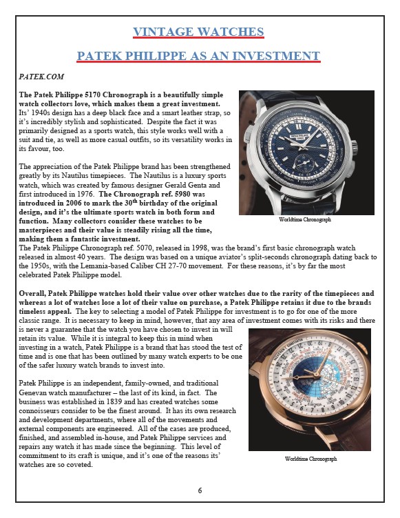 timeless appeal. The key to selecting a model of Patek Philippe for investment is to go for one of the more