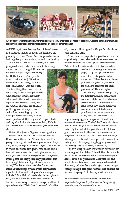 Two of this year’s Mar Farm kids, Oliver and Lou Lou; Nitty Gritty bars are made of goat milk, Alabama honey, cinnamon, and