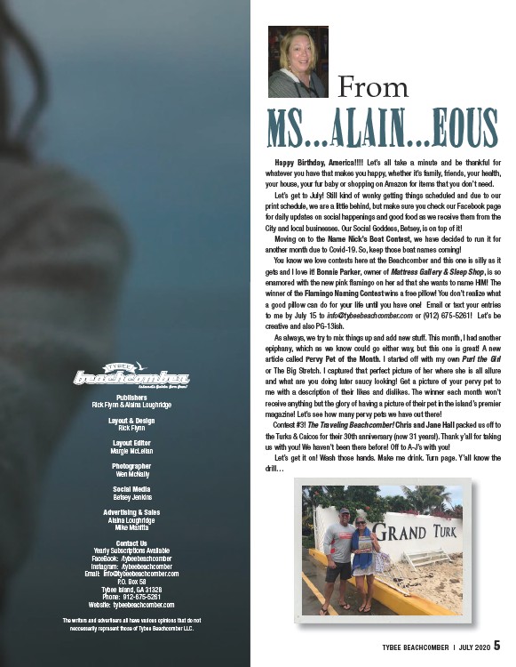 to me by July 15 to info@tybeebeachcomber.com or (912) 675-5261! Let’s be