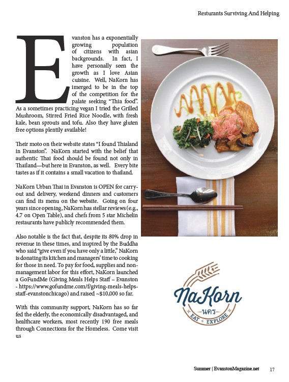 NaKorn Urban Thai in Evanston is OPEN for carryout