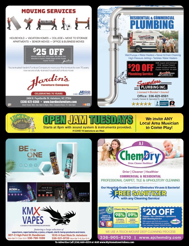 To Advertise Call (336) 669-4359 or visit www.MyHometownValues.com