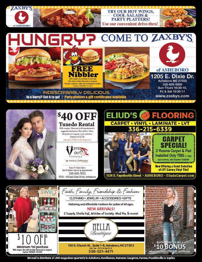 We mail & distribute 21,000 magazines quarterly in Asheboro, Randleman, Ramseur, Seagrove, Farmer, Franklinville & Sophia