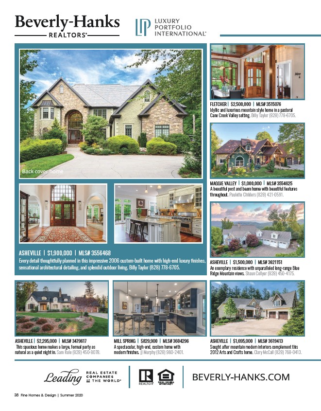 sensational architectural detailing, and splendid outdoor living. Billy Taylor (828) 778-6705.