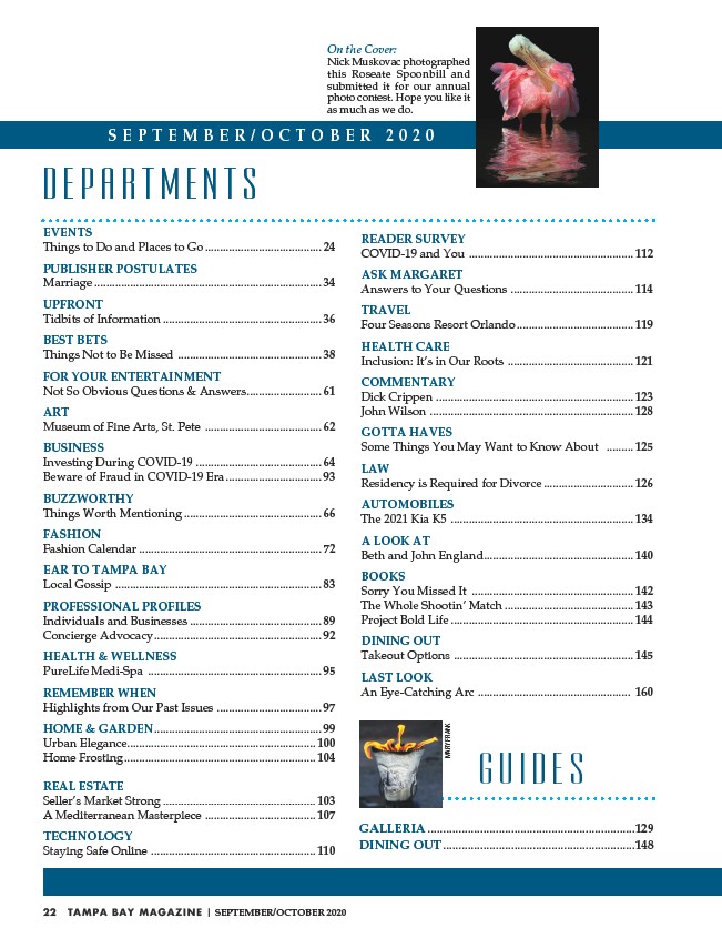 22 TAMPA BAY MAGAZINE | SEPTEMBER/OCTOBER 2020