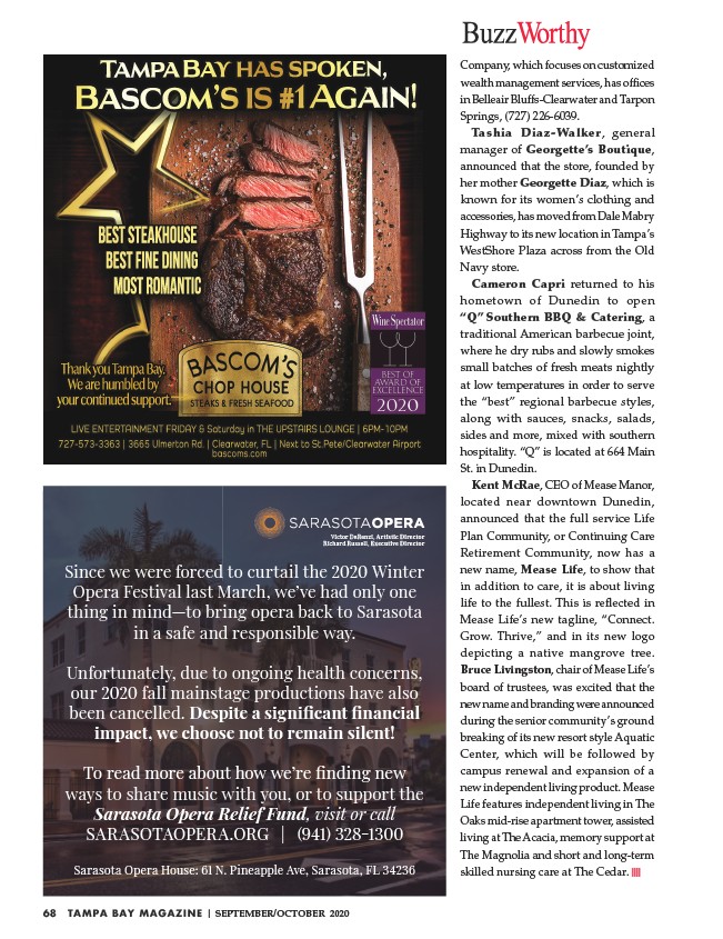 68 TAMPA BAY MAGAZINE | SEPTEMBER/OCTOBER 2020