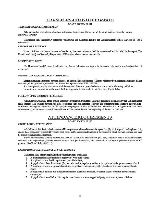 The teacher shall immediately report the withdrawal and the reason for it to the Superintendent’s office (Director of Pupil