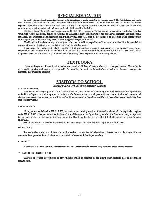 telephone, or send information to: Special Education Director, 200 Daniel Boone Drive, Barbourville, KY 40906. The district office
