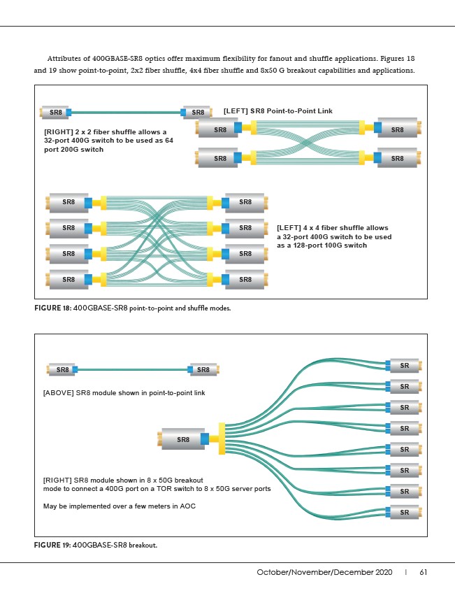 Attributes of 400GBASE-SR8 optics offer maximum flexibility for fanout and shuffle applications. Figures 18