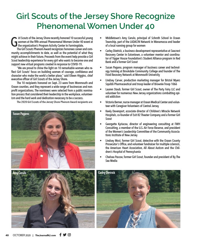 The 2020 Girl Scouts of the Jersey Shore Phenom Award recipients are: