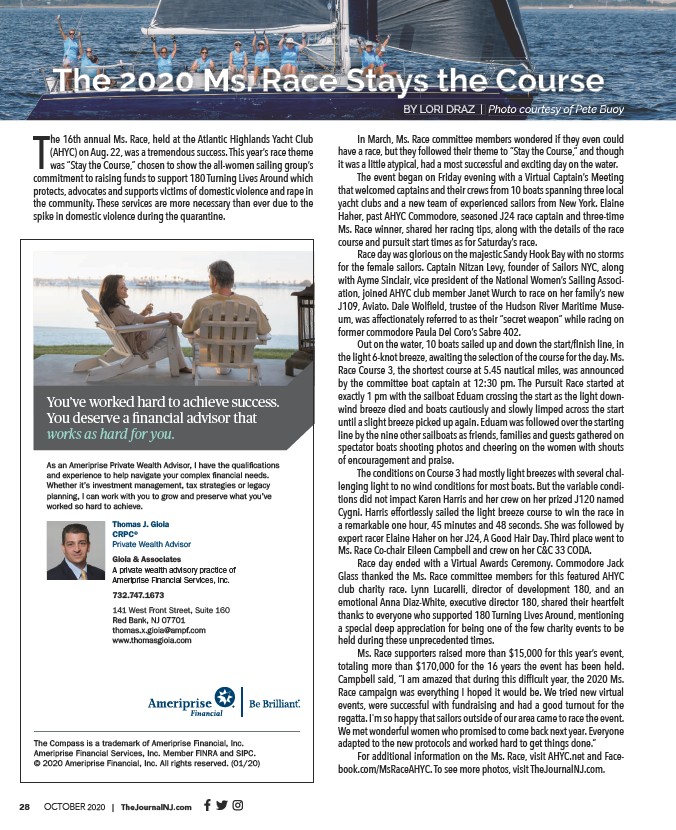 Pe P te Buo uo uoy Photo courtesy Pete Buoy P o of Photo courtesy y B e e o s The 16th annual Ms. Race, held at the Atlantic Highlands Yacht Club